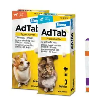 Nå på tilbud hos Apotek 1: AdTab tyggetabletter til katt og til hund 48 mg til katt (2-8 kg) ✅ Gyldig fra 25-03 til 21-04.