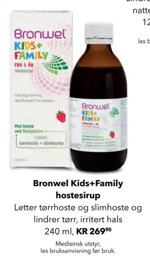Bronwel Kids+Family hostesirup tilbud og nettkampanjer hos Apotek 1