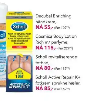 Nå på tilbud hos Apotek 1: Scholl Active Repair K+ fotkrem sprukne hæler ✅ Gyldig fra 28-01 til 10-02.