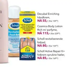Apotek 1 tilbyr et bredt utvalg av produkter, i tillegg til Scholl revitaliserende fotbad. Hold deg oppdatert med ukens Apotek 1 kundeavis for å finne fantastiske tilbud og kampanjer. I tillegg til Scholl revitaliserende fotbad, kan du også finne disse tilbud: Scholl Active Repair K+ fotkrem sprukne hæler, tilbud 2 & tilbud 3.