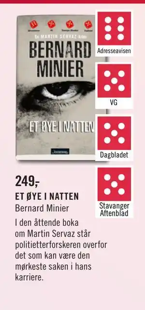 Nå på tilbud hos Ark Bokhandel: ET ØYE I NATTEN, NOK 249 ✅ Gyldig fra 1-12 til 24-12.