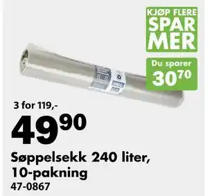 Nå på tilbud hos Biltema: Søppelsekk 240 liter, 10-pakning ✅ Gyldig fra 8-01 til 31-01.