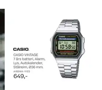 CASIO VINTAGE 7 års batteri, Alarm, Lys, Autokalender, Stålreim, 036 mm.