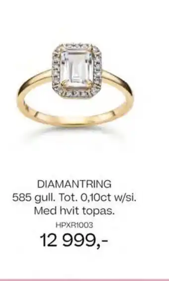 Diamantring 585 gull. tot. 0,10ct w/si. med hvit topas. rabatt hos Bjørklund