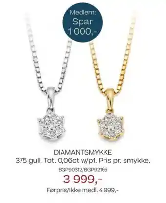 Diamantsmykke 375 gull. tot. 0,06ct w/p1. pris pr. smykke. rabatt hos Bjørklund
