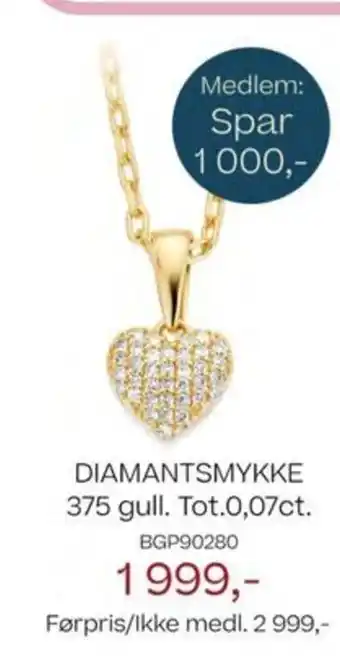Nå på tilbud hos Bjørklund: Diamantsmykke 375 gull. Tot.0,07ct. BGP90280 ✅ Gyldig fra 20-01 til 15-02.