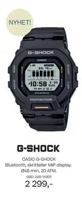 CASIO G-SHOCK Bluetooth, skritteller MIP display. 046 mm, 20 ATM. GBD-200-1A1ER
