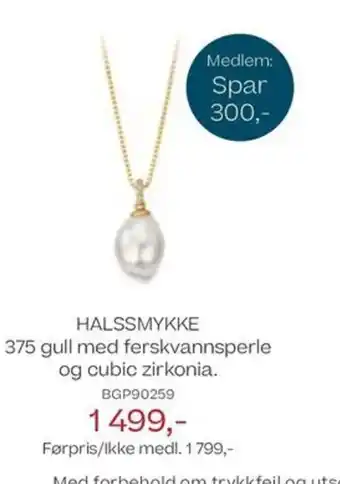 Halssmykke 375 gull med ferskvannsperle og cubic zirkonia. tilbud og nettkampanjer hos Bjørklund