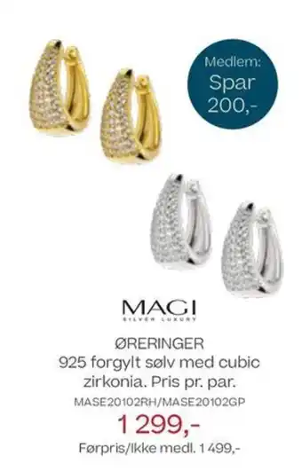 Magi silver luxury øreringer 925 forgylt sølv med cubic zirkonia. pris pr. par. tilbud hos Bjørklund