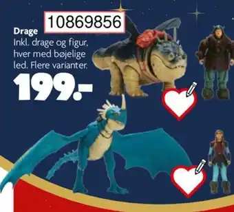 Prisen på Drage finner du øverst på siden, sammen med datoene da tilbudet er tilgjengelig. Du kan sjekke prisen i gjeldende BR Leker kundeavis eller på BR Leker nettsiden, hvis du vil. Kampanjer og spesial tilbud gir deg en sjans om å kjøpe BR Leker produkter til den laveste prisen.
