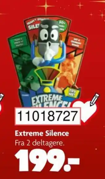 Prisen på Extreme Silence finner du øverst på siden, sammen med datoene da tilbudet er tilgjengelig. Du kan sjekke prisen i gjeldende BR Leker kundeavis eller på BR Leker nettsiden, hvis du vil. Kampanjer og spesial tilbud gir deg en sjans om å kjøpe BR Leker produkter til den laveste prisen.