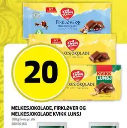 MELKESJOKOLADE, FIRKLØVER OG MELKESJOKOLADE KVIKK LUNSJ