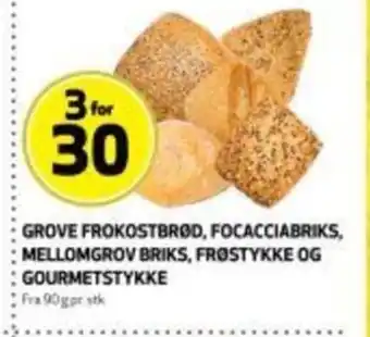 Grove frokostbrød, focacciabriks, mellomgrov briks, frostykke og :gourmetstykke tilbud og nettkampanjer hos Bunnpris