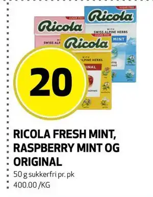 RICOLA FRESH MINT, RASPBERRY MINT OG ORIGINAL tilbud hos Bunnpris