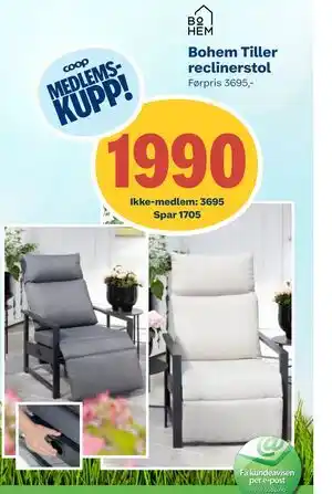 Nå på tilbud hos Coop Byggmix: Bohem Tiller reclinerstol ✅ Gyldig fra 26-04 til 9-05.