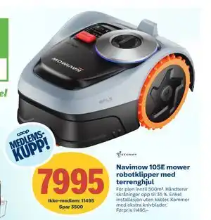 Nå på tilbud hos Coop Byggmix: Navimow 105E mower robotklipper med terreng hjul ✅ Gyldig fra 26-04 til 9-05.