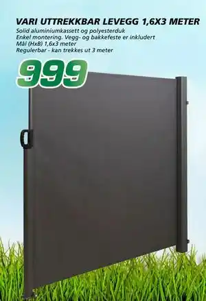 Nå på tilbud hos Coop Byggmix: VARI UTTREKKBAR LEVEGG 1,6X3 METER ✅ Gyldig fra 26-04 til 9-05.