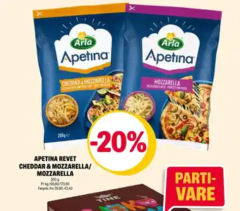 Apetina revet cheddar & mozzarella/ mozzarella tilbud og nettkampanjer hos Coop Extra