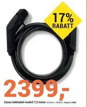 Nå på tilbud hos Elektroimportøren: Easee ladekabel mode3 7,5 meter ✅ Gyldig fra 15-02 til 8-03.