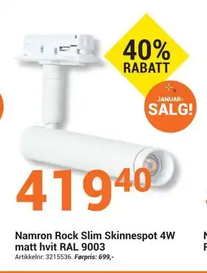 Nå på tilbud hos Elektroimportøren: Namron Rock Slim Skinnespot 4W matt hvit RAL 9003 ✅ Gyldig fra 1-01 til 18-01.