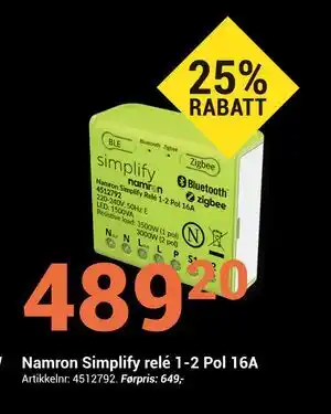 Namron Simplify relé 1-2 Pol 16A-kampanje hos Elektroimportøren