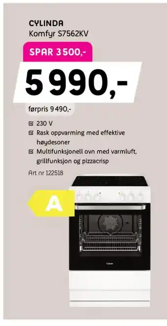 CYLINDA Komfyr S7562KV tilbud og nettkampanjer hos ELON