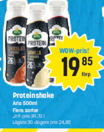 Prisen på Proteinshake Arla Flera sorter finner du øverst på siden, sammen med datoene da tilbudet er tilgjengelig. Du kan sjekke prisen i gjeldende Eurocash kundeavis eller på Eurocash nettsiden, hvis du vil. Kampanjer og spesial tilbud gir deg en sjans om å kjøpe Eurocash produkter til den laveste prisen.