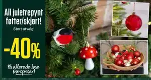 Europris tilbyr et bredt utvalg av produkter, i tillegg til All juletrepynt føtter/skjørt!. Hold deg oppdatert med ukens Europris kundeavis for å finne fantastiske tilbud og kampanjer. I tillegg til All juletrepynt føtter/skjørt!, kan du også finne disse tilbud: All juletrepynt, 50% PÅ ALL JULETEKSTIL, JULEDEKOR, JULETREPYNT OG JULEELEKTRISK & Juletrepynt.