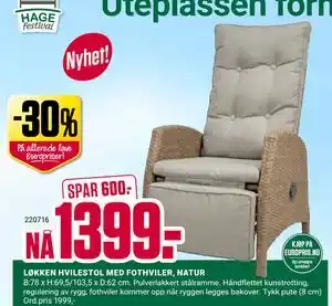 Nå på tilbud hos Europris: LØKKEN HVILESTOL MED FOTHVILER, NATUR ✅ Gyldig fra 20-04 til 25-04.