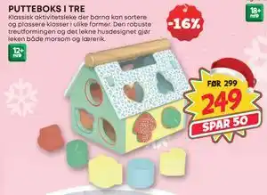 Nå på tilbud hos Extra Leker: PUTTEBOKS I TRE, NOK 249 ✅ Gyldig fra 12-11 til 24-12.