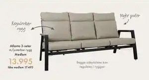 Nå på tilbud hos Fagmøbler: Atlanta 3-seter m/justerbar rygg Medlem ✅ Gyldig fra 1-04 til 30-09.