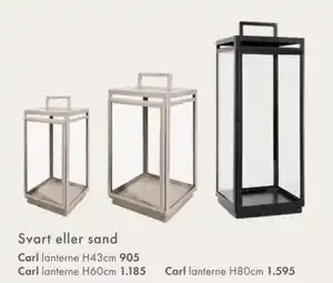 Dette tilbudet kan finnes i forskjellige butikker. Ta en titt på alle produkter for å få det billigste Carl lanterne. Hvis du vil finne ut om dette produktet har en større rabatt i en annen butikk, sjekk kategorien 'Kjøkken og Bad'. Du vil sikkert se disse tilbudene også: Carl lanterne, Carl lanterne svart H60cm & Carl lanterne svart H80cm.