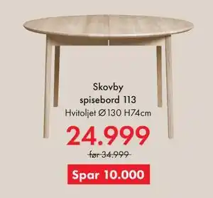 Nå på tilbud hos Fagmøbler: Hvitoljet Ø130 H74cm ✅ Gyldig fra 1-01 til 31-01.