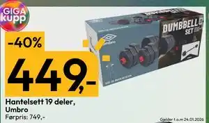 Nå på tilbud hos Gigaboks: Hantelsett 19 deler,Umbro ✅ Gyldig fra 12-01 til 24-01.