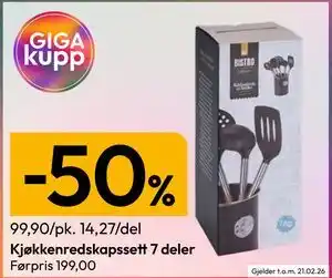 Nå på tilbud hos Gigaboks: Kjøkkenredskapssett 7 deler ✅ Gyldig fra 9-02 til 21-02.
