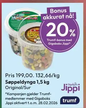 Nå på tilbud hos Gigaboks: Søppeldynga 1,5 kg ✅ Gyldig fra 23-02 til 28-02.
