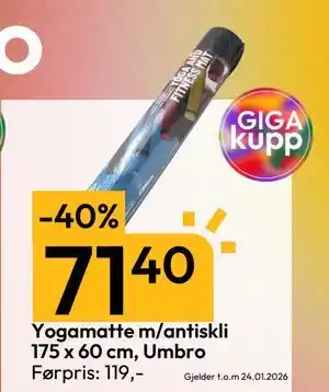 Nå på tilbud hos Gigaboks: Yogamatte m/antiskli 175 x 60 cm, Umbro ✅ Gyldig fra 5-01 til 24-01.