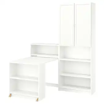 Aktuelle Billy / oxberg Bokhylle med klaffebord, hvit, 160x202 cm tilbud på IKEA fra 30-03 til 12-04.