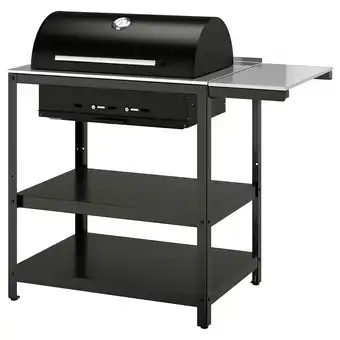 Aktuelle GrillskÄr Kullgrill med sidebord, rustfritt stål/utendørs, 93/116x61 cm tilbud på IKEA fra 20-04 til 10-05.