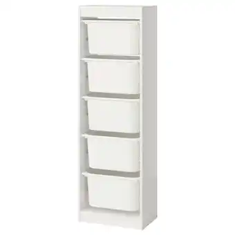 Aktuelle Trofast Oppbevaringskombinasjon med bokser, hvit/hvit, 46x30x145 cm tilbud på IKEA fra 26-01 til 8-02.
