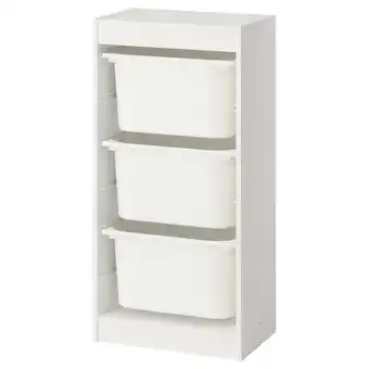 Aktuelle Trofast Oppbevaringskombinasjon med bokser, hvit/hvit, 46x30x94 cm tilbud på IKEA fra 26-01 til 8-02.
