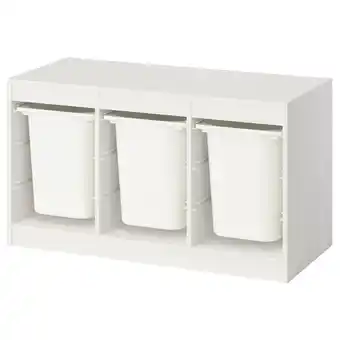 Aktuelle Trofast Oppbevaringskombinasjon med bokser, hvit/hvit, 99x44x56 cm tilbud på IKEA fra 26-01 til 8-02.