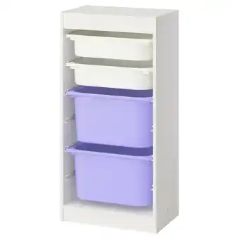 Aktuelle Trofast Oppbevaringskombinasjon med bokser, hvit hvit/lilla, 46x30x94 cm tilbud på IKEA fra 26-01 til 8-02.