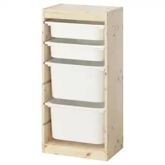 Aktuelle Trofast Oppbevaringskombinasjon med bokser, hvitbeiset furu/hvit, 44x30x91 cm tilbud på IKEA fra 26-01 til 8-02.