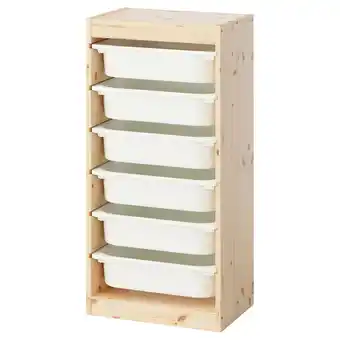 Aktuelle Trofast Oppbevaringskombinasjon med bokser, hvitbeiset furu/hvit, 44x30x91 cm tilbud på IKEA fra 26-01 til 8-02.