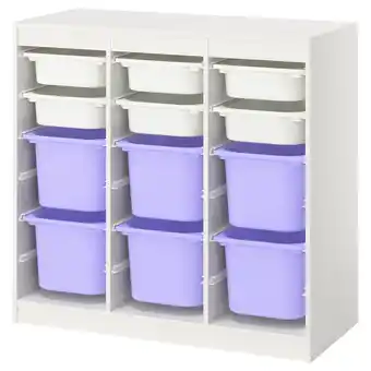 Aktuelle Trofast Oppbevaringskombinasjon med bokser, romavdeler/hvit lilla, 99x44x94 cm tilbud på IKEA fra 26-01 til 8-02.