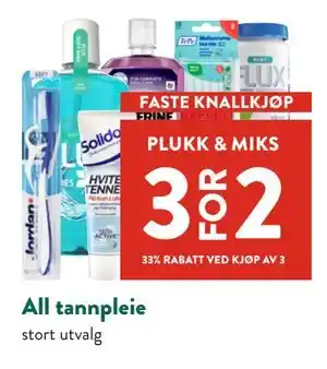 Dette tilbudet kan finnes i forskjellige butikker. Ta en titt på alle produkter for å få det billigste All tannpleie. Hvis du vil finne ut om dette produktet har en større rabatt i en annen butikk, sjekk kategorien 'Matvarebutikk'. Du vil sikkert se disse tilbudene også: All tannpleie, ALL TANNPLEIE & Tannpleie.