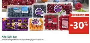 Dette tilbudet kan finnes i forskjellige butikker. Ta en titt på alle produkter for å få det billigste Alle friske bær. Hvis du vil finne ut om dette produktet har en større rabatt i en annen butikk, sjekk kategorien 'Matvarebutikk'. Du vil sikkert se disse tilbudene også: Alle friske bær, Alle friske bær & ALLE FRISKE BÆR.