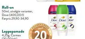 Dette tilbudet kan finnes i forskjellige butikker. Ta en titt på alle produkter for å få det billigste Roll-on. Hvis du vil finne ut om dette produktet har en større rabatt i en annen butikk, sjekk kategorien 'Matvarebutikk'. Du vil sikkert se disse tilbudene også: Roll-on, DOVE ROLL-ON & STERILAN ROLL-ON.
