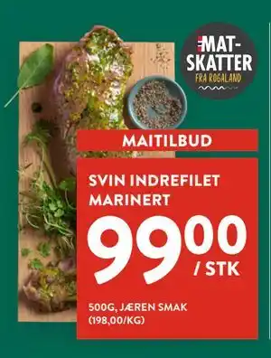 SVIN INDREFILET MARINERT er denne uken tilgjengelig hos Jacobs med en attraktiv rabatt. Her finner du informasjon om gjeldende pris, kampanjevilkår og spesialrabatter. Tilbudet gjelder i uke 18. Er det utløpt, kan du se andre aktuelle tilbud. Følg produktkategorien for å motta varsler når SVIN INDREFILET MARINERT igjen har en gunstig pris hos Jacobs.Spørsmål og svar om SVIN INDREFILET MARINERT